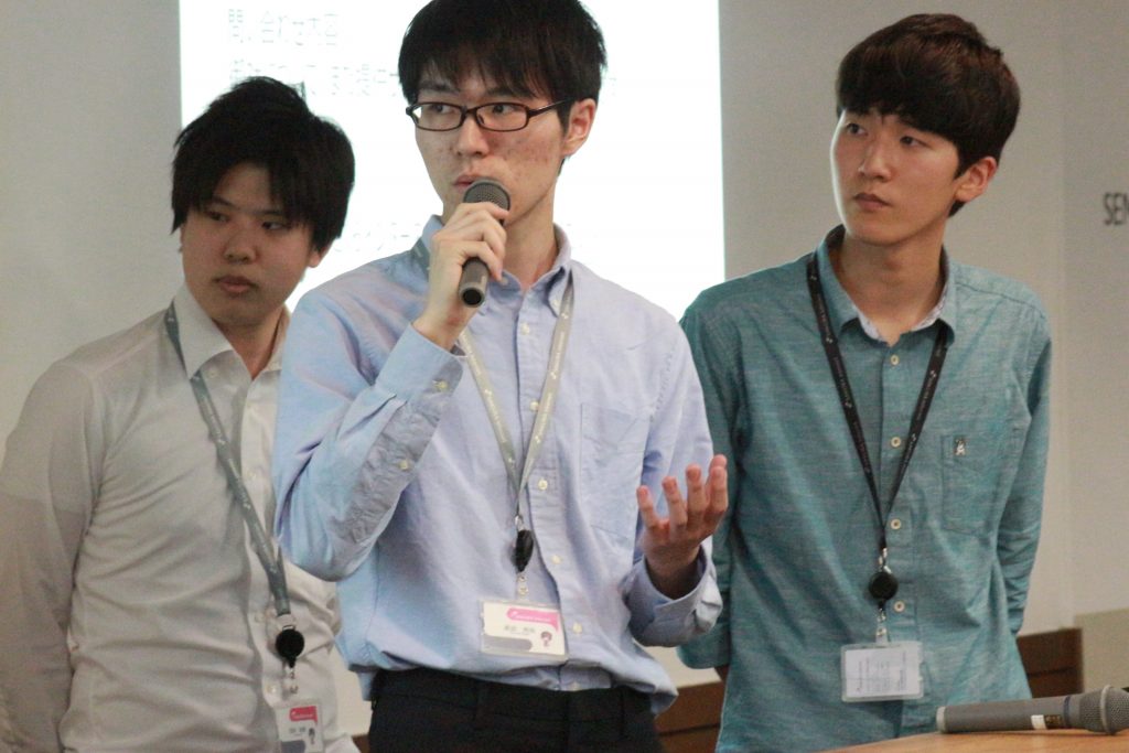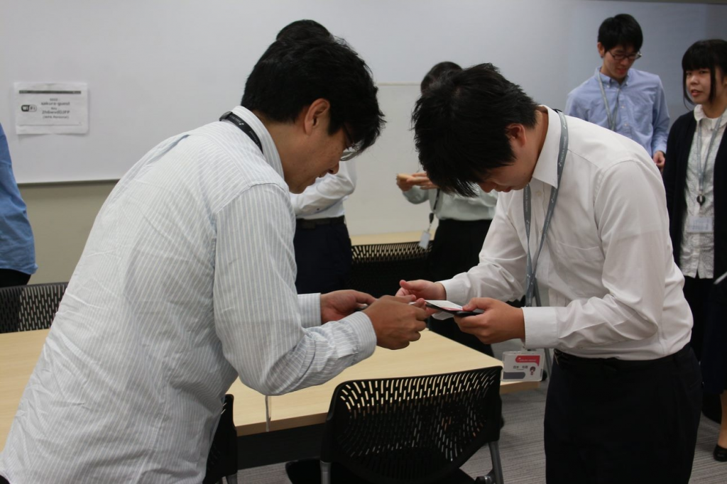 まずはじめに皆さんが何に興味をもっているのか、思いつくものを書いて発表していただくマトリクス自己紹介を実施。その後フロアをぐるっと1周し、社内の様子を見学しました。