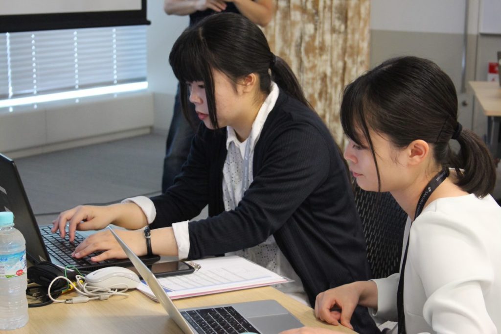 IT企業では珍しい対面サポート「まりなカフェ」を体験していただくことがメインのインターンシップでした。お客さまのお迎えからお見送りまでの一連の流れを、初めてのことばかりで戸惑いながらも皆さん真摯に対応してくださいました。社員からのアドバイスを受けて繰り返し練習を重ねる度に、形式だけでなく、どう説明すればお客さまに伝わるか、お客さまにどんな問いかけをすればご要望の本質がみえてくるのか、お客さまに寄り添ったサポートを行おうとする姿勢に社員も刺激を受けました。