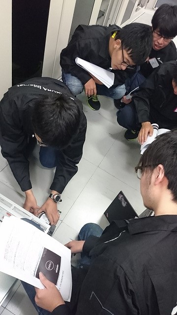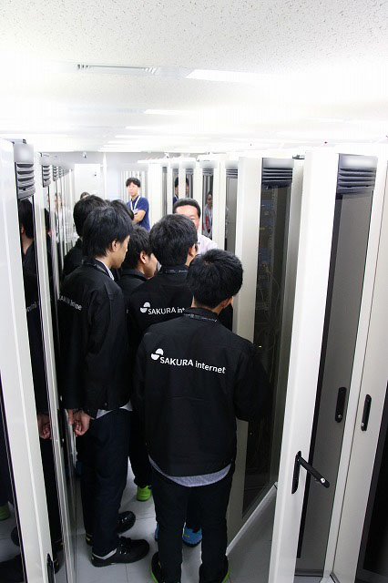 先ほどの注意点を頭に入れて作業着に着替え、データセンター内へ。ファンの轟音や、寒さに圧倒されつつも自分たちが作業するラックへ向かいます。