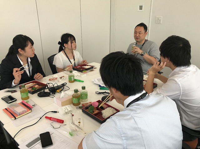 諸設定を終えた後は、社員の方々と共にお昼休憩をとりました。食事をしながら仕事に関する様々なお話を聞かせていただきました。