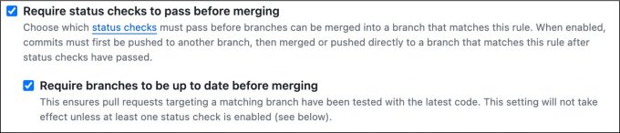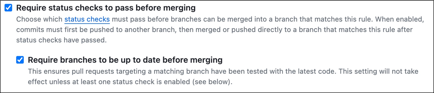 あとはこれはGitHubの話になりますが、Branch Protection Ruleで保護するというのも重要です。複数のPull Requestをまとめてマージしたりすると、そのときにTerraformのapplyが同時に走ってしまって、その結果、tfstateが壊れることが起こり得ます。これを防ぐ方法はいろいろありますが、一番簡単に防ぐ方法はBranch Protection Ruleの「Require status checks to pass before merging」と「Require branches to be up to date before merging」にチェックを入れておくことです(上図参照)。特定のブランチをマージするときに、mainブランチの変更に追従していない場合はマージできないようになるので、複数のPull Requestをまとめてマージするのを防ぐことができます。TerraformのplanとapplyをGitHub Actionsでやるときは、これのチェックは絶対に入れましょう。