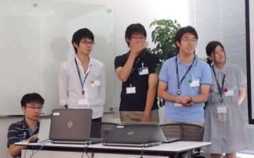会議はテレビ電話で各拠点が接続され、まず営業部からの報告がありました。スライドに売り上げや契約数を具体的に表記し、営業成績に対し、褒辞や厳しい指摘があり、生の現場を体験し刺激を受けました。テクニカルソリューション部からも開発中のプログラムの進捗が報告され、営業部と確認し、連携を高めていく重要な会議に見えました。