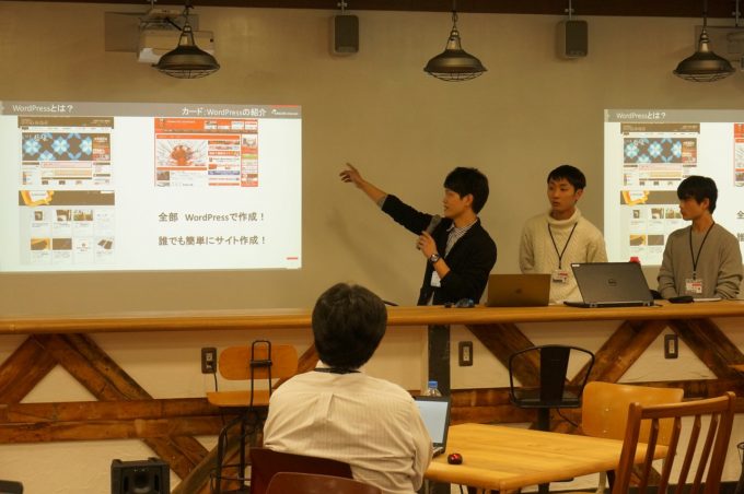 お客様が安く、早く、簡単にホームページを公開するための資料を作成するために、3人でグループワークをして、インターン最終日に発表を行いました。