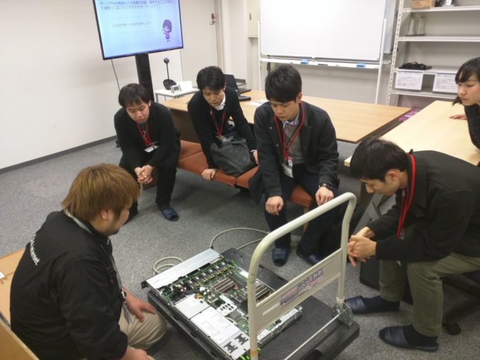 次にデータセンターとはどのような場所か、サーバーとは何か、サーバーの種類について講義を受けました。講義の途中、起動していない実物のサーバー一つを、蓋を開けた状態で見せていただきました。
