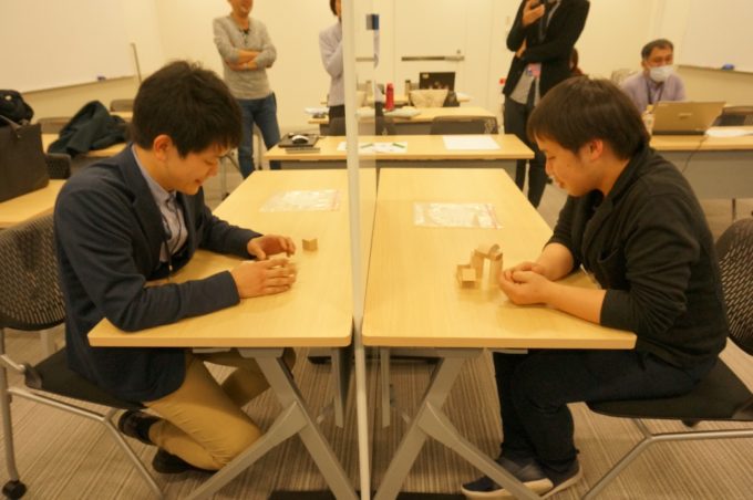 自分の積み木の状態を言葉だけで説明することはとっても難しい。透視の力があれば・・・